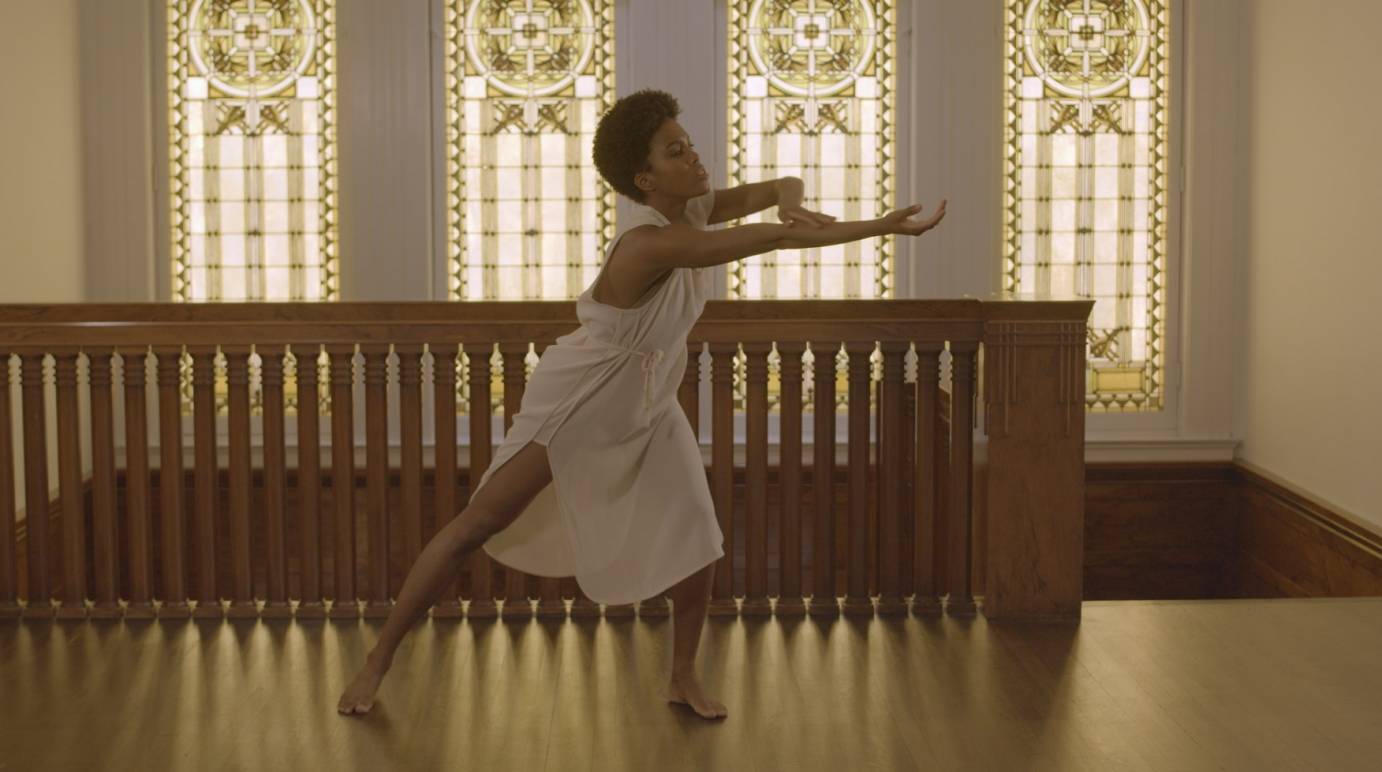 In this work and many of my pieces, the camera is a device that also choreographs. It is a “third eye,” a moving device that captures the dancers’ movements while itself is also moving. In this way it joins and takes an active role in the dance. In this piece, I wanted there to be a sense that both Paige and the camera were performing together. Domenic’s camerawork would capture Paige’s gestures, but the residue of his body’s movement would also remain in the piece in the handheld motion of the camera. Domenic and I worked closed together on these ideas. We scouted locations, and together formed a sense of what this work would look like. We wanted to make something poetic, something that would resonate with the choral society’s performance and compliment their voices with dance and beautiful cinematography. When talking with Paige about this, we created gestures and movements based on motifs of care, nurturing and acts of kindness. We created a vocabulary based on these ideas that Paige improvised on in the final piece.