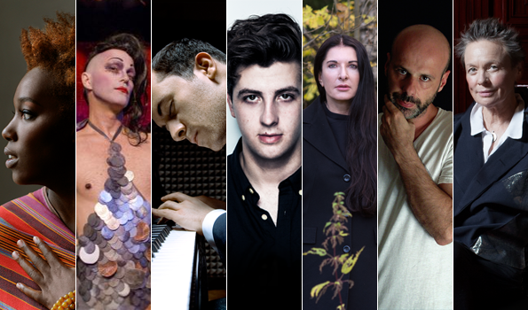 L-R: Imani Uzuri, Taylor Mac, Igor Levit, Jamie xx, Marina Abramović, Philippe Parreno, Laurie Anderson.