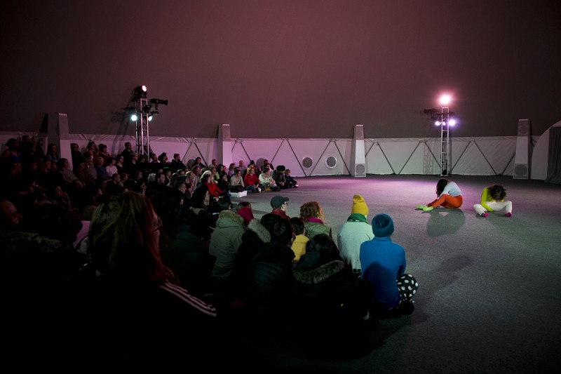 The artists don’t have a firm plan of what’s next, but they do want Tundra Body Baby to come full circle. They hope to merge their earlier experiments in tiny spaces with what they discovered while working in the Dome. “We’re constantly trying to deconstruct while constructing,” says Atwell. “While taking away the comforts of walls, lights, and sounds [that are traditional in dance],” adds Cook.