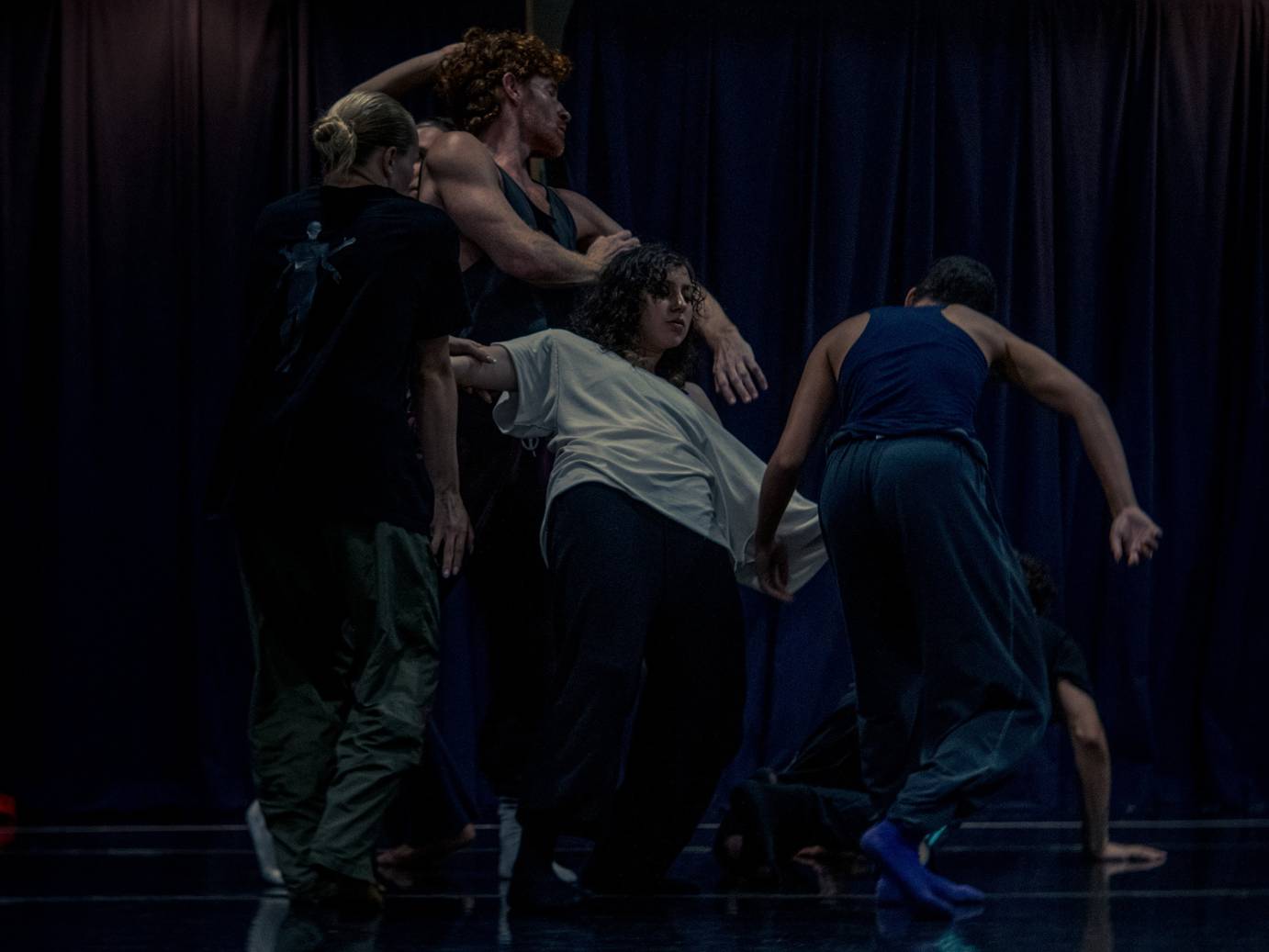 As I enter their studio, the artists navigate a group lifting section. They practice changing multiple formations, which transition almost imperceptibly. Audible breaths preface dynamic catches, suspensions, and level changes. I’m fascinated by the ease of these shifts amid the full-throttle action.
