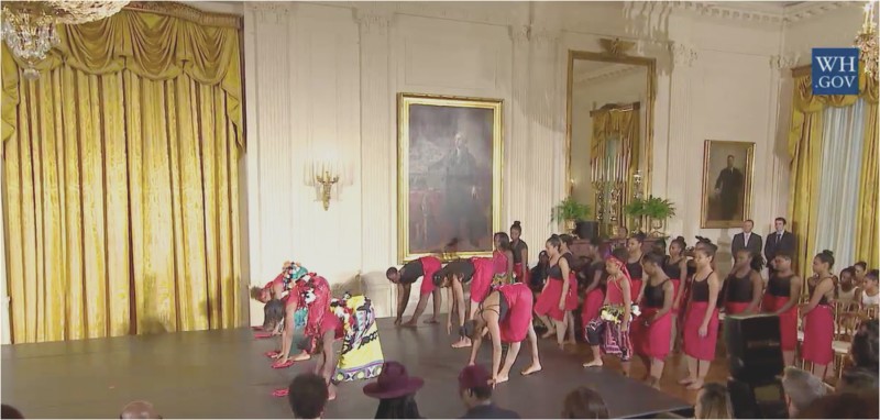 Legacy and heritage were at the forefront as Mrs. Obama spoke directly to her young guests about the struggles the women artists before them had endured: how dancers, like Debbie Allen, were rejected outright from dance schools only because of the color of their skin; how black ballerinas couldn’t get hired and were told to wear white pancake makeup to fit into a mold. “Your presence here,” she said,“ is a result of the grinding hard work they put into this. This legacy is your greatest inheritance… My message to the young people here and the young people watching [is to] show that kind of education and discipline in any sphere…We fight for the opportunity to succeed, we prepare for the opportunity to shine.”