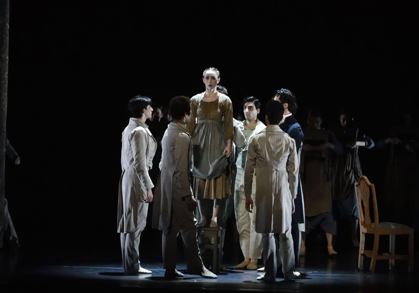 Marston’s choreography is equally undistinguished. Moments — the tick-tock precision of Lowood’s students as they sup and study, a posh bash of waltzing gentlepeople — do resonate. Yet they’re swept up in an endless eddy of swirling movements that all look the same. The many pas de deux between Jane and Mr. Rochester fail to capture the lovers’ ardor (too much clutching at and whirling around each other), and their “bantering” is depicted through the extension of a pointed foot at a 45° angle. Although the intent may be to indicate a sharp, candid wit, the effect is vulgar, like they want to trip someone.