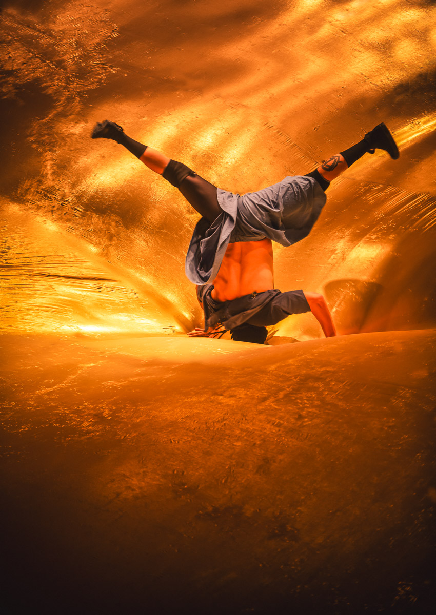 I am flabbergasted by how everyone manages to avoid running into each other, and no one seems to get hurt. Their split-second timing, awareness, and care for one another while speeding through space feel supernatural. Intrigued by the tribal quality of the work, I want to travel with them. I think of all the hard work and the sweat, and have second thoughts. I sense enticing danger.