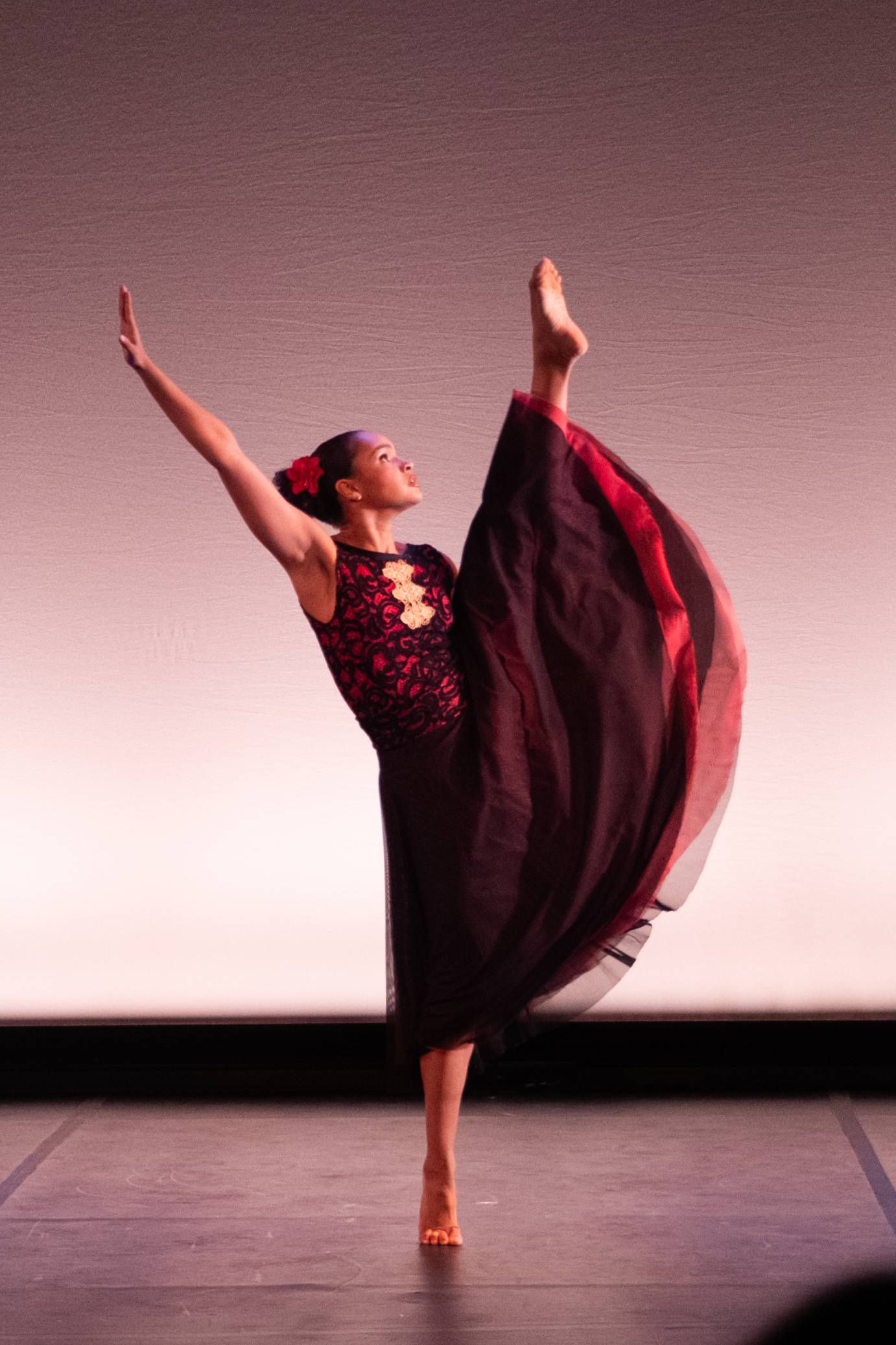 The dancing commences with Open Door, originally choreographed for the Alvin Ailey American Dance Theater in 2015. Amina Lydia Vargas steps forward in a flowing black and red dress, a red flower in her hair, all adding to the Latin flair of the soundtrack “La Puerta” by Luis Demetrio.