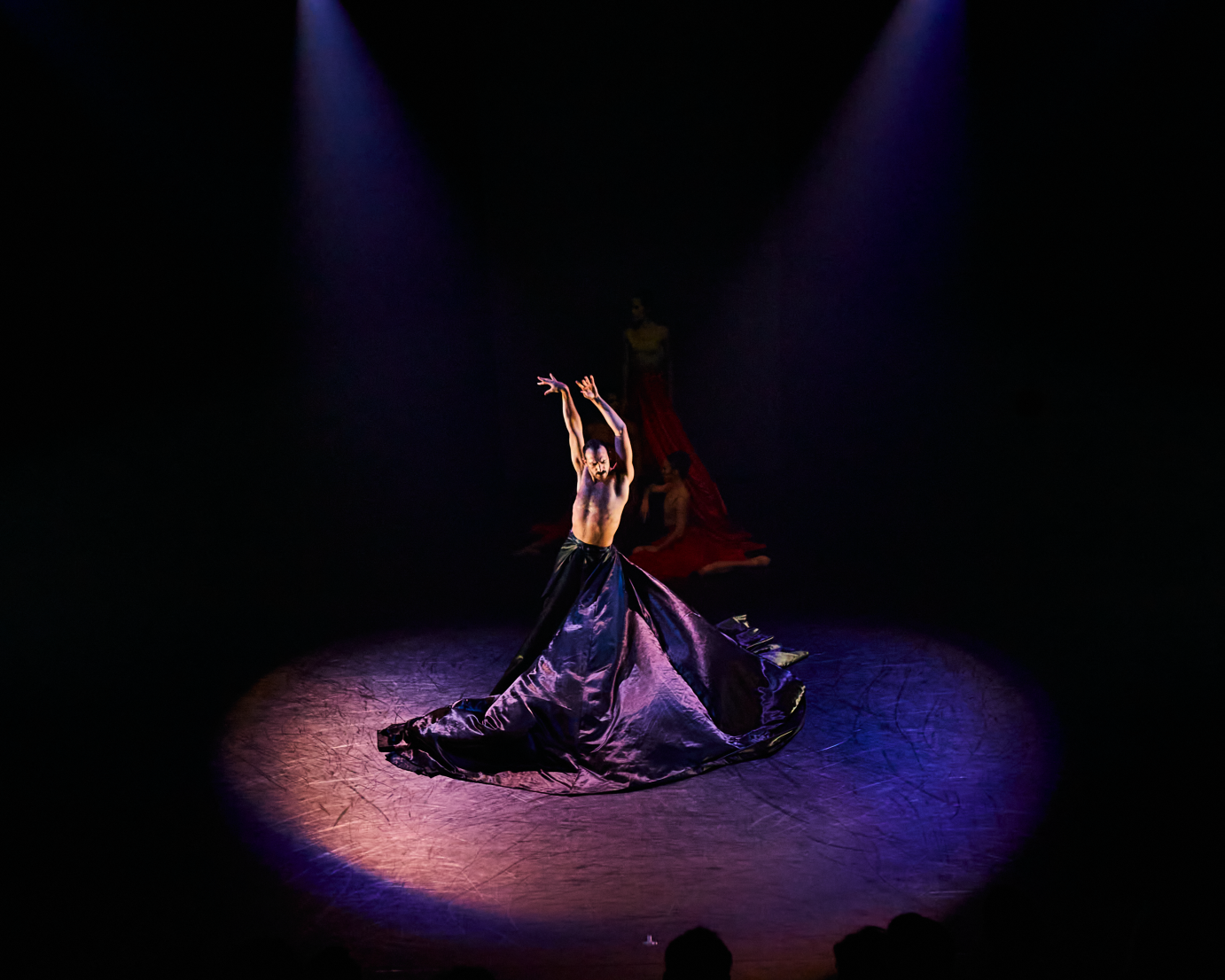Born in Iraq to a dancer dad, he studied ballet, jazz, ballroom, modern, and folkloric dance in Lebanon before arriving in New York. There, he excelled as a social and competitive dancesport teacher. These disparate influences cascade through Bolero, which unfurls like a cross between an haute couture fashion show and a Broadway revue.