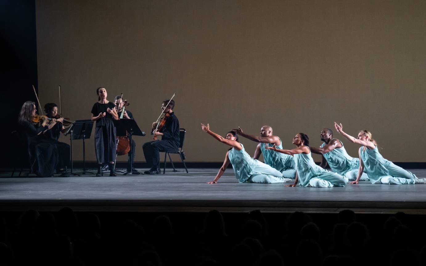 Dance Is A Mother (2025), which opened the evening, was choreographed earlier this year by Jamar Roberts, a commission by NY City Center for Sara Mearns l Artists at the Center. The dance brims with statuesque movement often generated from flowing arm gestures. The most alluring dance artists (though all are first-rate) are Roberts and Jeroboam Bozeman.