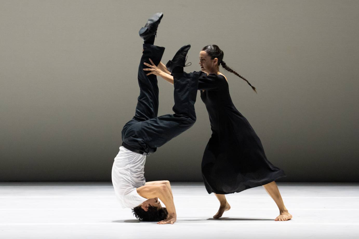 While the physicality is daring, unfortunately, the duet is laden with gestural clichés. Lazy imagery like a pat on her bum — which she obviously finds annoying — switches her momentarily into ninja mode and she is ready to slice him to pieces. When a motif like this one repeats, it loses its effect. I applaud these warriors, but wish they could have found peace sooner.