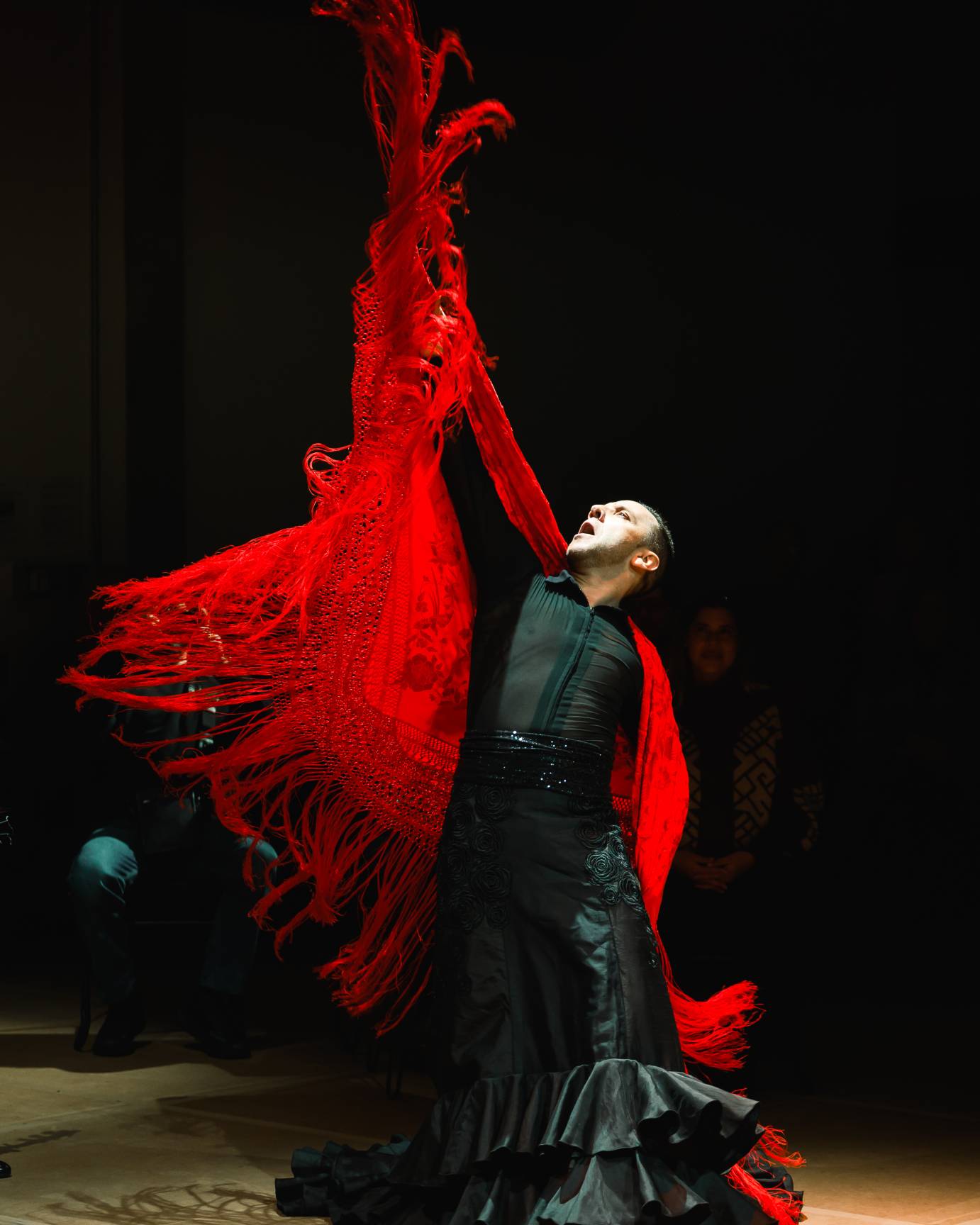 Liñán, with his no-nonsense crew cut and unassuming air, certainly left us grinning with his manic mantón twirling and bata de cola swirling solo. He may have been channeling Loie Fuller as he whipped around his fabric, creating a fiery abstraction of red and black. He, De la Molia, and Rey had just performed at City Center for the 2026 FF, as did Sellés with the company of Estévez/Paños. The young men are all at the top of their game, in tune with each other, and clearly, addicted to speed. Their camaraderie and gaiety are infectious.