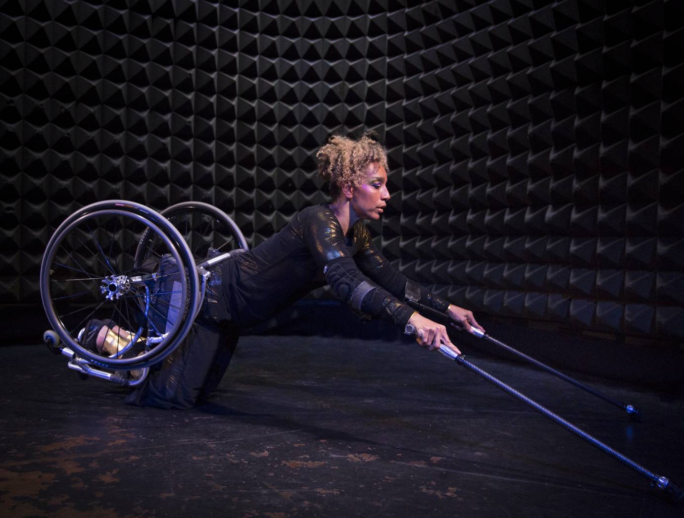 Even the wheelchair dancer, Alice Sheppard, performs amazing stunts here. And after she has finished tumbling head-over-wheels, balancing on her shoulders, and exploring every inch of available space with a pair of crutches that extend her lines, no one else dare complain about the stage’s limitations. Sheppard’s piece is called Where Good Souls Fear, and while it is arguably too focused on the dancer’s technique, she deserves our unstinting admiration.