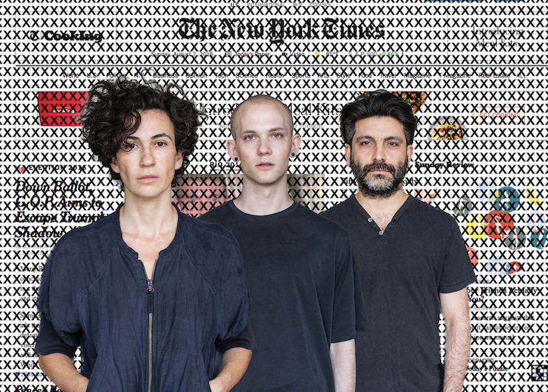 Smack. That’s the sound RoseAnne Spradlin’s X makes when it sucker punches you in the gut. X features a post-apocalyptic dreamscape using the most minimal of resources: a quartet of beat-up ballet barres, three movement warriors (the word dancers seems too quaint for this ferocious trio), and one astonishing sound design of gunshots, churchy melodies, and distorted disco by Glen Fogel. Spradlin forges brutal imagery that evokes the Sisyphean nature of war and disaster. The threesome aims imaginary guns, one slings another on his back, and they sweep over, under, and across the ballet barres. They wrestle and they grapple and they thrash and they dash. Over and over, again and again.