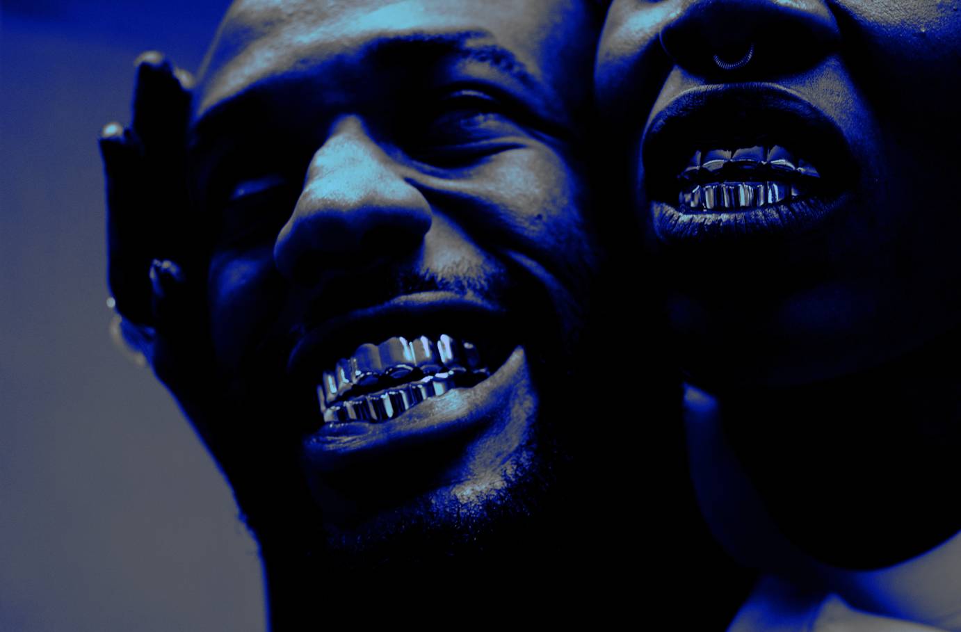 Curled fists plunge and swipe through the cold dark, spines undulate and hips grind in slow motion, limbs tremble, stutter, and entwine through potent geometries, weight slung low as their bodies’ codes slip continuously in and out of legibility. Throughout, Menzo and Mejía Cortés punctuate the deep groans and rising wails of the soundscape with rhythmic incantations in tightly isolated whispers and full-voiced choruses, passing lyrics between them as one being. Their world of elemental darkness holds multiply-textured volatilities that give rise to Black potentialities and modes of becoming through collective grief and mourning, cooperative rage and resistance, and shared pleasure and mirth.