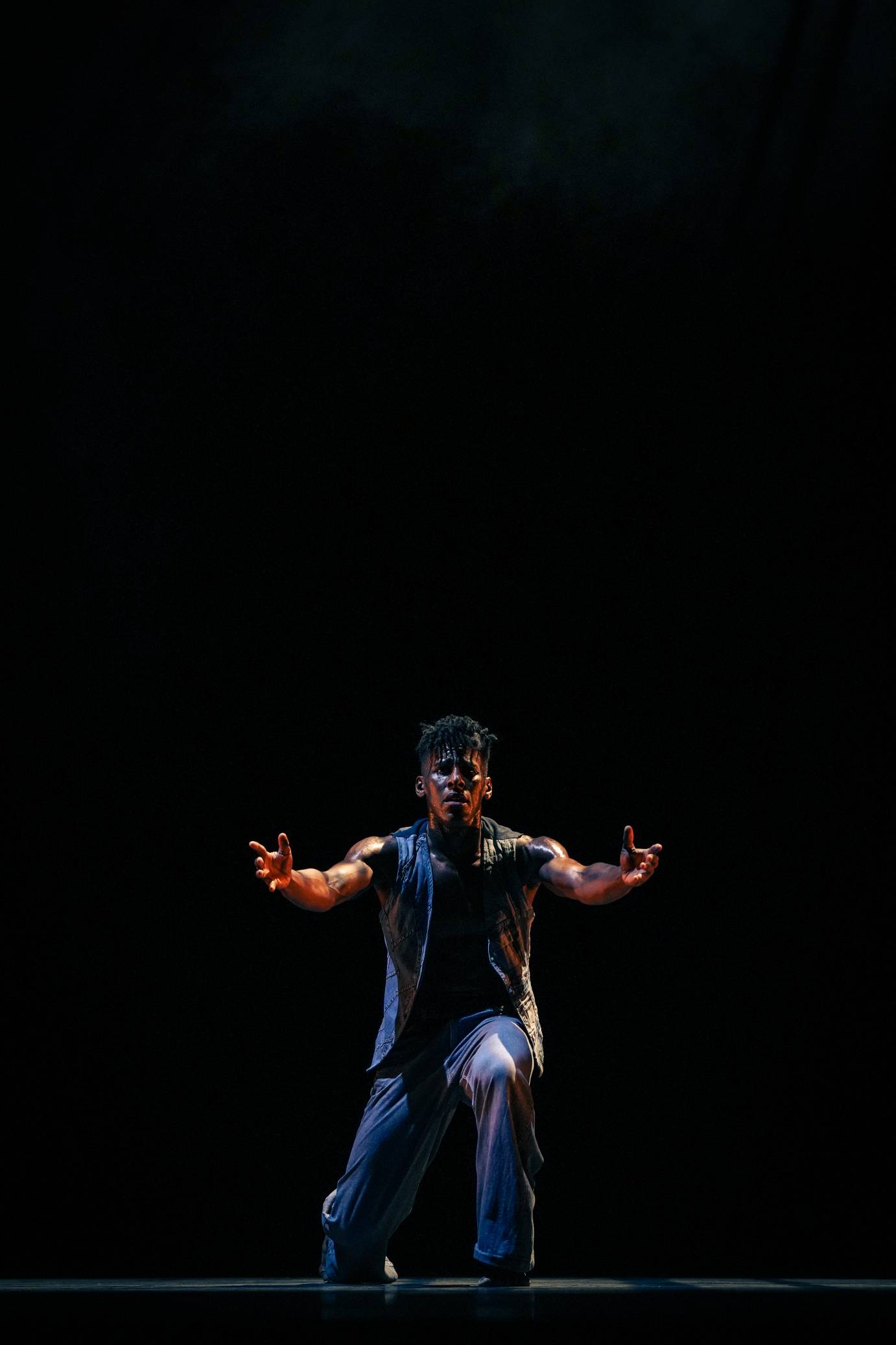 Extending the “American Legacies” theme, choreographer Jamar Roberts distills a history of struggle and resistance in his dance We the People. Neatly crafted, this plotless season premiere features a denim-clad ensemble of average folks divided into trios and triple lines, while a friendly gestural duet for Jacob Larsen and Meagan King expands into a dialog between two groups. In place of dramatic vignettes, We the People offers a string of breakout solos.
