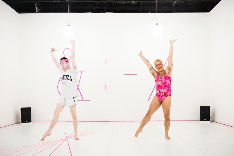 In Part 1, Gutierrez and millennial Mickey Mahar strut through spicy cheerleader routines studded with wrist circles and booty twitching, each action presented like a rhinestone: hard, sharp, garishly winking. Mahar, gangly with skin like half-and-half, acts as the ethereal naïf to Gutierrez’s brassy vamp. At one point, they repeatedly chant, “We are the dancers,” toying with pronunciation and emphasis to create tones ranging from stridency to pretension. Indeed, they are the dancers. Gutierrez and Mahar are a dissonant pairing in terms of age, appearance, and attitude, but watching their side-by-side shenanigans highlights all the ways dance can harmonize contrast.
