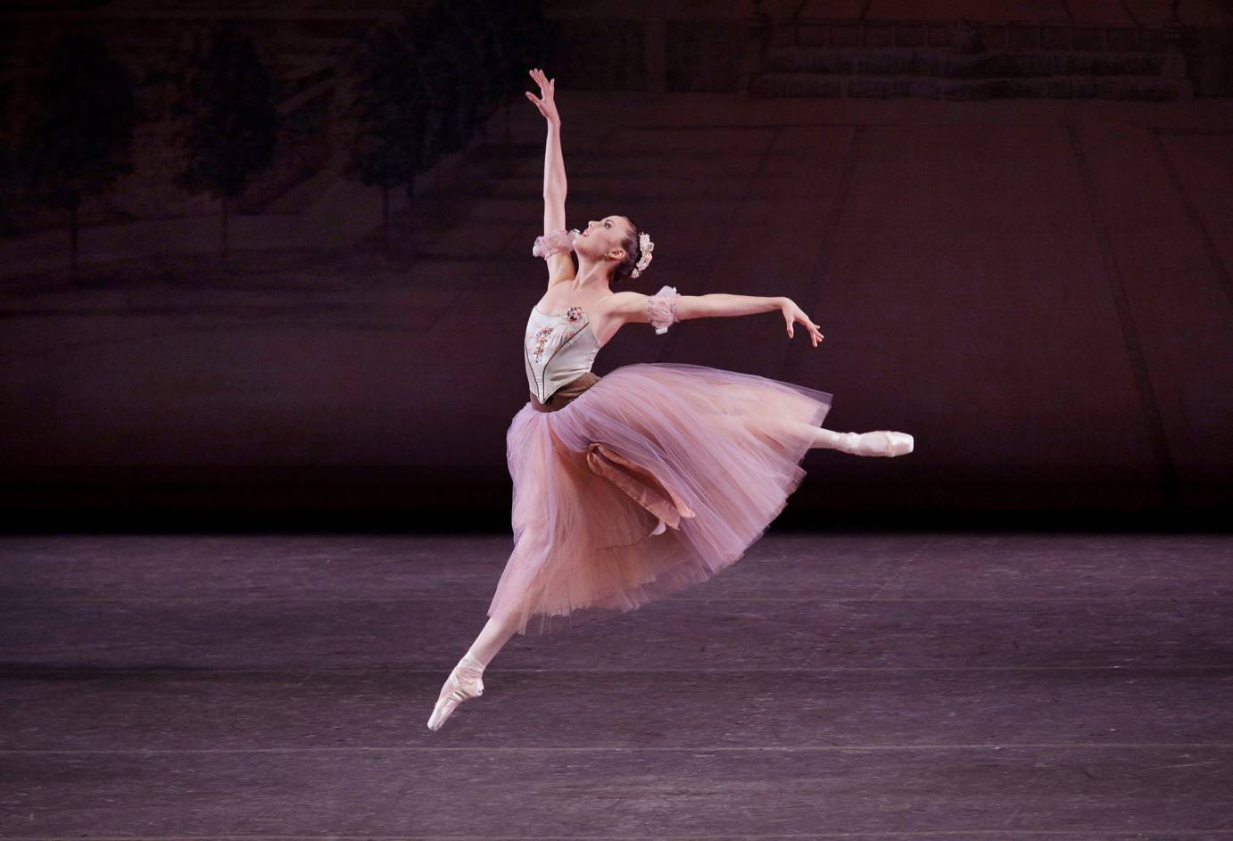The corps (in pink tulle romantic tutus and green bodices) perform the equivalent of a ballet blanc, before Pereira returns to remind us that she is the queen of this garden party. Huxley, not to be left out, returns for a virtuosic solo.