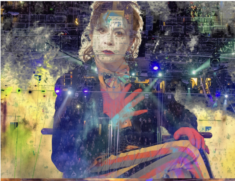 Balancing these poignant displays of frustration and anger were delightful spouts of imagination and perspective. A clown-faced Ara Fitzgerald appeared as The Ghost of P. T. Barnum.Wearing long red gloves, a top hat, multi-colored striped pants, and a vest, Fitzgerald spouted witticisms, bowed, and bubbled.
