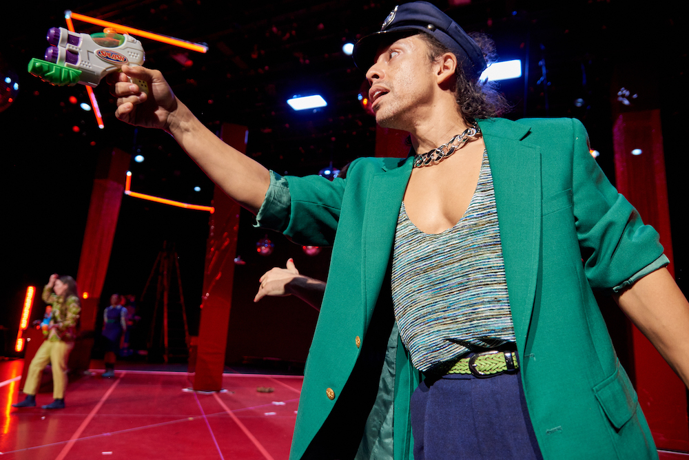When the non-linear nature of this storytelling becomes overwhelming, which it often did for me, there are other features to keep audiences grounded. The adjustable set of red columns and hanging disco balls by You-Shin Chen allows the space to transform from a bank, to rehearsal studio and cabaret club seamlessly. As a documentary on their creative process in real time, the cast infuses the production with confessionals about what they are doing: “I would never rob a bank, but I would certainly let someone rob a bank for me. Kelly’s wit serves as a pleasing anchor in my favorite interjection: “It’s very Madonna Blond Ambition” says one cast member in The Garden of Eden, “but I’m just trying to figure out the difference between a 1972 bank robbery and a 2021 Go Fund Me.”