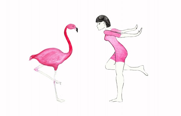 Dressed in identical pink jumpsuits, the twins conjure up the image of graceful pink flamingos within an extra large egg. When the image of a chicken-man hybrid is projected onscreen, I laugh aloud because my private imaginings are communal.