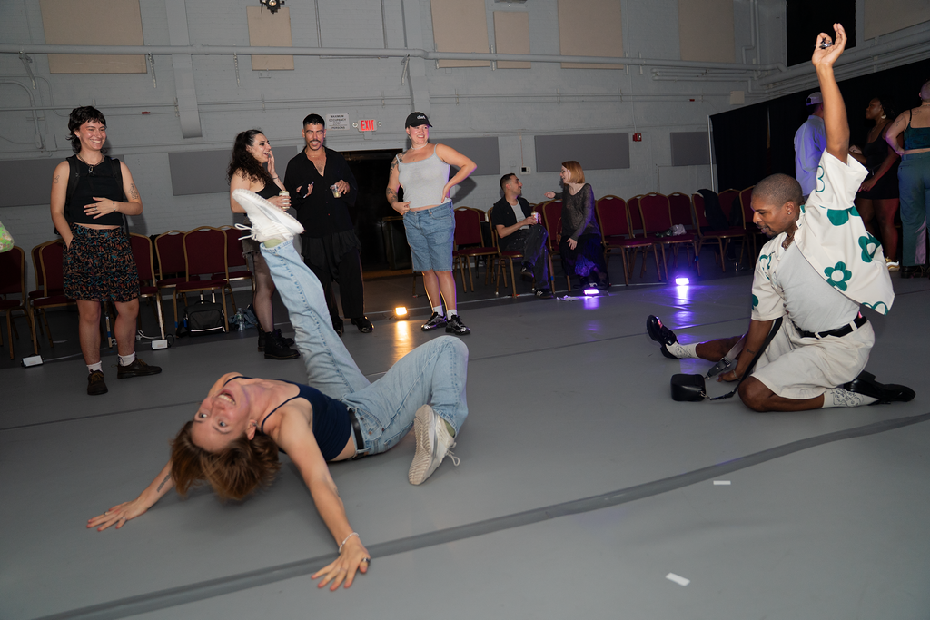 Many concert dance spaces come with a set of expectations: enter the theater and quietly take your seats, sit silently and stare at a proscenium stage throughout the performance, then, leave the same way you came. THAT SHOW, half-performance, half-party, founded in 2024, takes this notion and turns it on its head entirely. The pieces featured in their semi-annual events are often genre-expansive and include some form of audience engagement. Plus the overall environment created is relaxed. Almost every performance concludes with a DJ set by resident DJ Peet the Scholar , turning the stage into a dance floor and the performance space into a party.