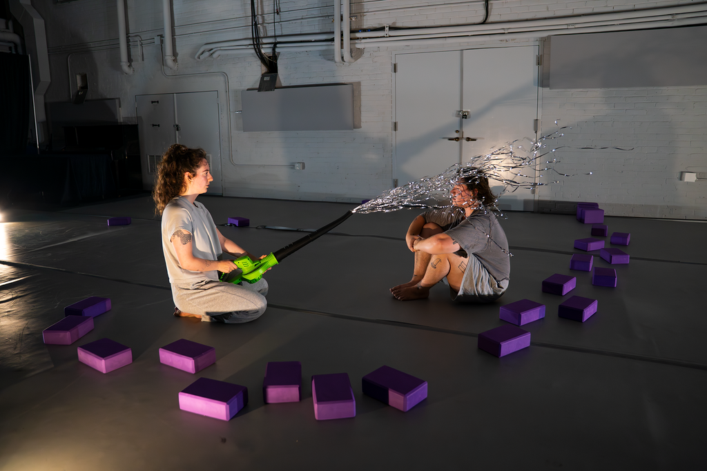 In the first program, which ran from August 21-22, 2025, choreographers Em Papineau and Sofia Engelman (in collaboration) and Peter Alfred Elizalde presented new works. Papineau and Engelman’s duet “train” centered around themes of effort and interpersonal relationships, while high-intensity contact-based movement explorations support and punctuated the piece.