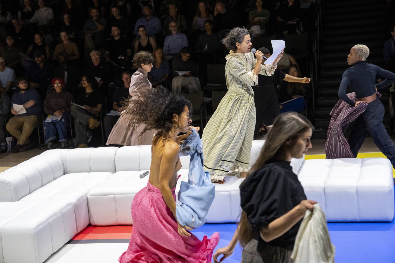 Over nearly two hours, a meandering playlist activates sensitive, boisterous bodies draped in an ever-changing array of garments (in addition to choreography and direction, Harrell is co-credited for costume, scenic, and sound design). The work’s exhaustive intent verges on exhausting, but for its measured dramatic pacing and the exhilarating humanity of its performers.