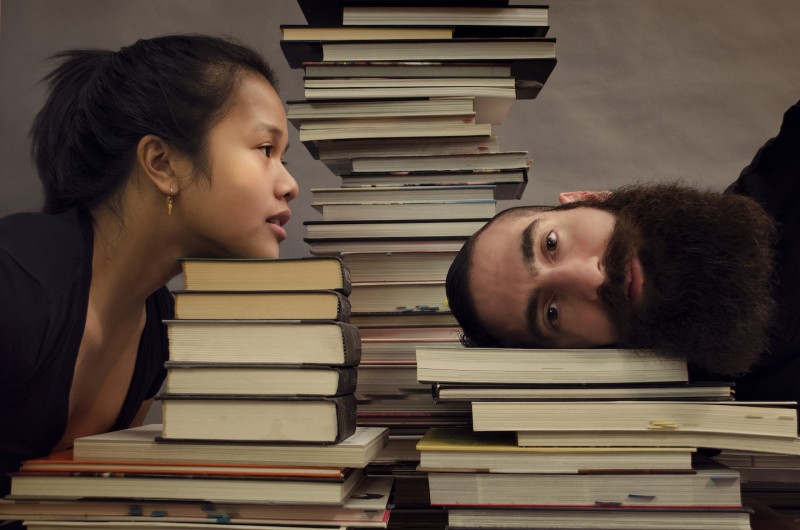 The concept of performing improvisation is a unique beast that usually requires some structure around which the performers can navigate. In several of the pieces, the improvisation is fueled by a set of props. In Trails Of, piles of books create a landscape that two dancers explore. They relocate the books to different stacks, constructing an obstacle course before eventually dismantling it. The performers violently rip pages out and shove them into other books, revealing how art can be deconstructed into rudimentary elements and then pieced back together to create something new.