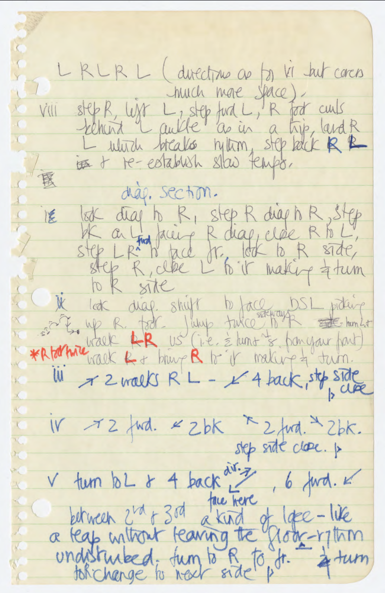 An impressive archive of Gordon’s life and work is available on his Archiveography website, which houses a multimedia collection of photos, videos, writing, and memorabilia that attests to the near boundless range of the artist’s creative mind. Materials for TIMES FOUR include arresting photos of Gordon and Setterfield, show programs, and part of the work’s original score, which Cardona used to reconstruct the dance along with bits of rehearsal footage and informed by longstanding creative dialogue with Gordon, whose work he began performing in 2018 (Gordon was also Cardona’s father-in-law).