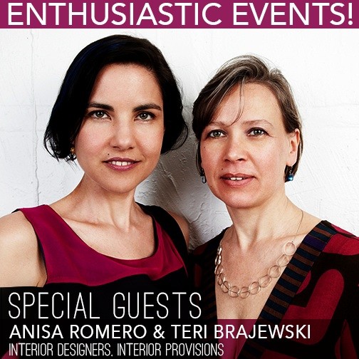 Designers, Anisa Romero and Teri Brajewski, have created a special Enthusiastic Events! Collection for our Enthusiastic Event! attendees. Purchasing VIP Silver or Gold Admission gives audience members a $50 Gift Certificate to INTERIOR PROVISIONS affordable luxury with a conscience (in addition to other one- of- a-kind, empowering gifts.) All audience members will be able to enjoy ( and purchase) affordable luxury with a conscience from INTERIOR PROVISIONS at our event.