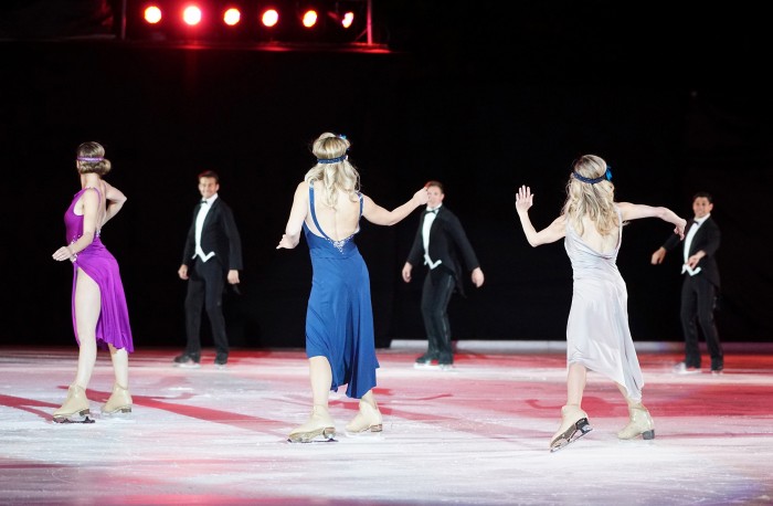Sinead Kerr (Olympian, Skating Coach, Choreographer & Assistant Choreographer at ICI): Synthetic ice obviously feels different from real, frozen ice, but I am still more comfortable performing on my skates than I would be in shoes!