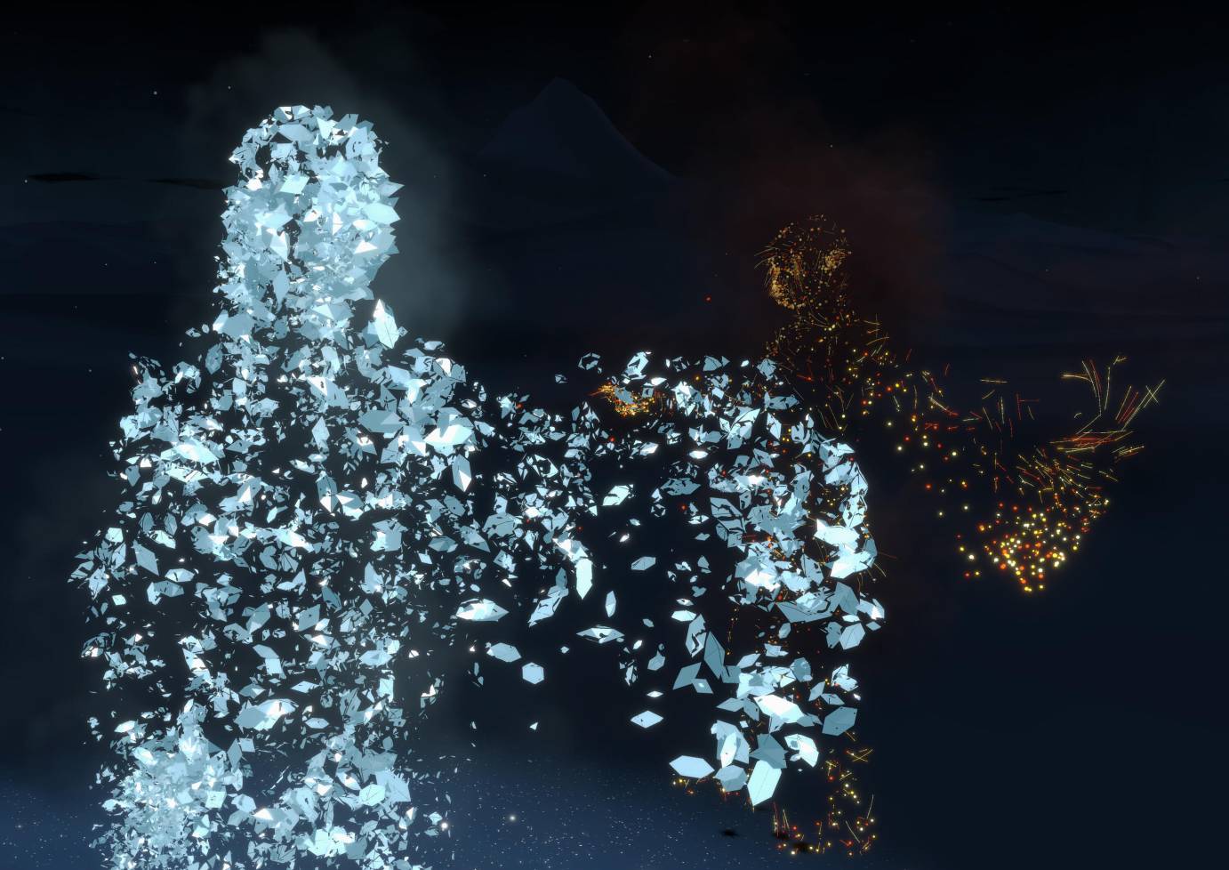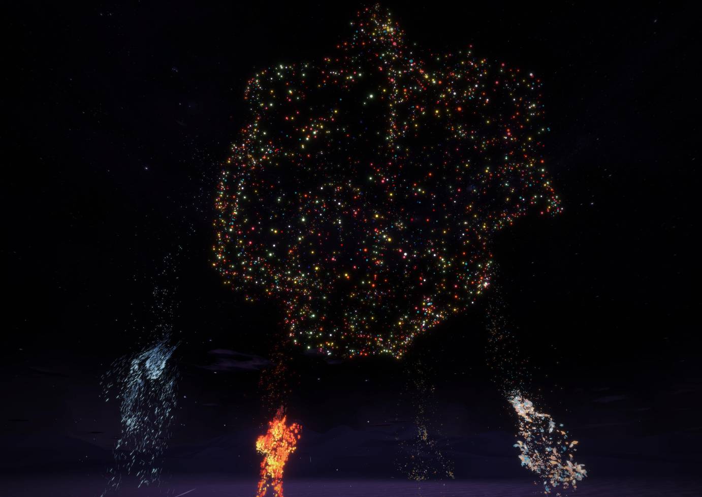 As I was developing the idea, I knew I wanted the experience to be as light as possible. I didn’t want haptics — I wanted all the sensations to come from movement itself and from the body. I did a prototyping session two years ago at Lincoln Center to build out the mechanics of the piece. The prototype helped define the movement algorithm system, the way that the avatars get developed through movement. We had 150 people come through, and from that data we understood that there are at least sixteen archetypal ways that people move that we could use in an artistic or symbolic way. The 16 avatars are inspired by the characteristics of natural elements: snow, rain, lava, the ocean, flames, wind, or sparks.